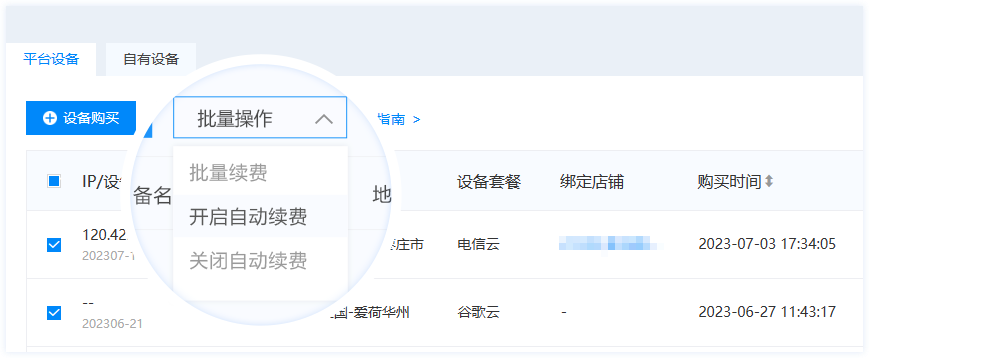 为店铺绑定的设备开启自动续费,并提前充值,到期3天前自动续费,避免不必要的损失;