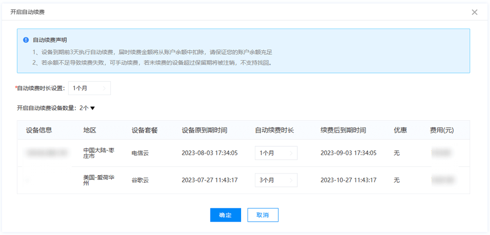 选择各店铺要自动续费的时长,检查店铺、时间、价格等信息,点击确认即可