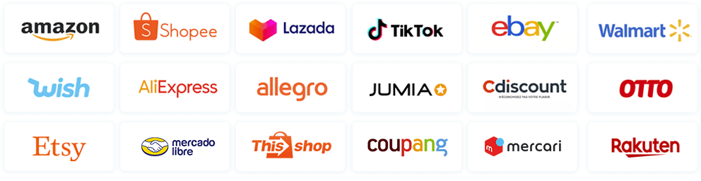 支持亚马逊、Shopee、Lazada、沃尔玛、eBay、速卖通、Wish、etsy、Shopify等100+电商平台