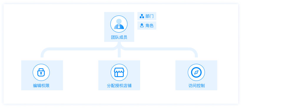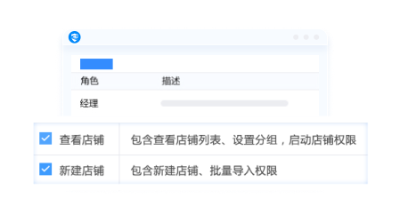 为不同的角色授权不同的店铺操作权限,同时可自主设置谁可以访问页面内容,设置访问规则